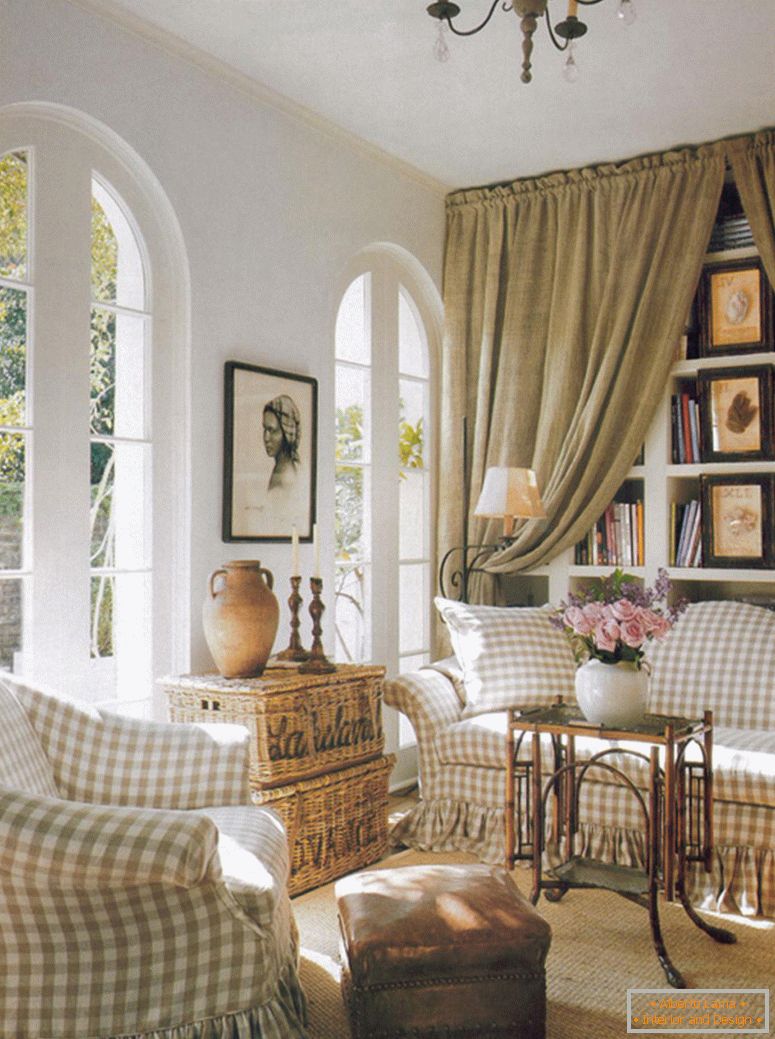 У жыллё павінны знаходзіцца самыя неабходныя прадметы дэкору і мэблі. Ўся неабходная для людзей хатняе начынне павінна быць схаваная ў вялікіх шафах. Калі няма магчымасці ўсталяваць убудаваныя канструкцыі, то лепш за ўсё выкарыстоўваць маленькія камоды, дзе ёсць вялікая колькасць скрыначак. У дадзены інтэр'ер пышна ўпісваецца не надта высокая мэбля, зручныя канапы і сталы абсалютна рознай вышыні.