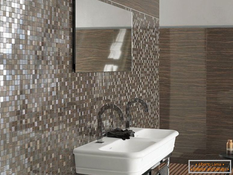 Сцены і падлогу ваннай варта зрабіць у аднолькавым светлым або цёмным фоне, выкарыстоўваючы глянцавыя паверхні. Столь цёмнымі ўзорамі лепш не абцяжарваць. Ва ўпрыгожванні ня забараняюцца арыгінальныя ўзоры і нават этнічныя матывы.