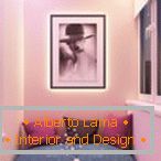 Смелы прыём для ваннай - гульня кантрастаў. Не будзе выглядаць змрочнай, ўселіць аптымізм матавая цёмная сцяна (чарнічны, калючая) з жоўтай ракавінай на яе фоне - сонца, якое выйшла з-за хмар. Прыём афарбоўкі толькі адной сцяны і ў дачыненні для зоны пярэднім пакоі. Ўзаемадзеянне са светла-бэжавым дазволіць пазбегнуць звужэння прасторы, устаноўленая ўваходныя дзверы карычневага, шакаладнага адцення падтрымае каляровае рашэнне, падкрэсліць кантраснасць.
