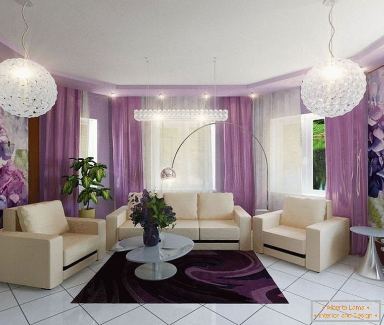 - Скандынаўскі стыль. Для яго характэрна выкарыстанне халоднай гамы, шырокія вокны, наяўнасць каміна і «прыродны» дэкор. Да апошняга можна аднесці сапраўдныя галінкі на сценах, дарожкі з драўняных спілавалі, звярыныя шкуры на падлозе.