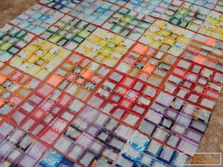 Каб зэканоміць прастору і падтрымаць агульную канцэпцыю дызайну, было вырашана адмовіцца ад дзвярэй у карысць тканкавых фіранак. З таго ж тэкстылю пашытыя шторы, Дэкаруюць акно насупраць шафы, дзякуючы чаму гэтая імправізаваная спальня здабыла сіметрыю і элегантны выгляд.