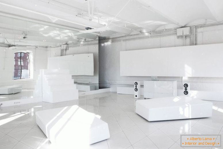 - Асновай дызайну інтэр'еру можа стаць два колеры: чорны-белы, белы-карычневы. Дамінуе выключна светлы адценне.